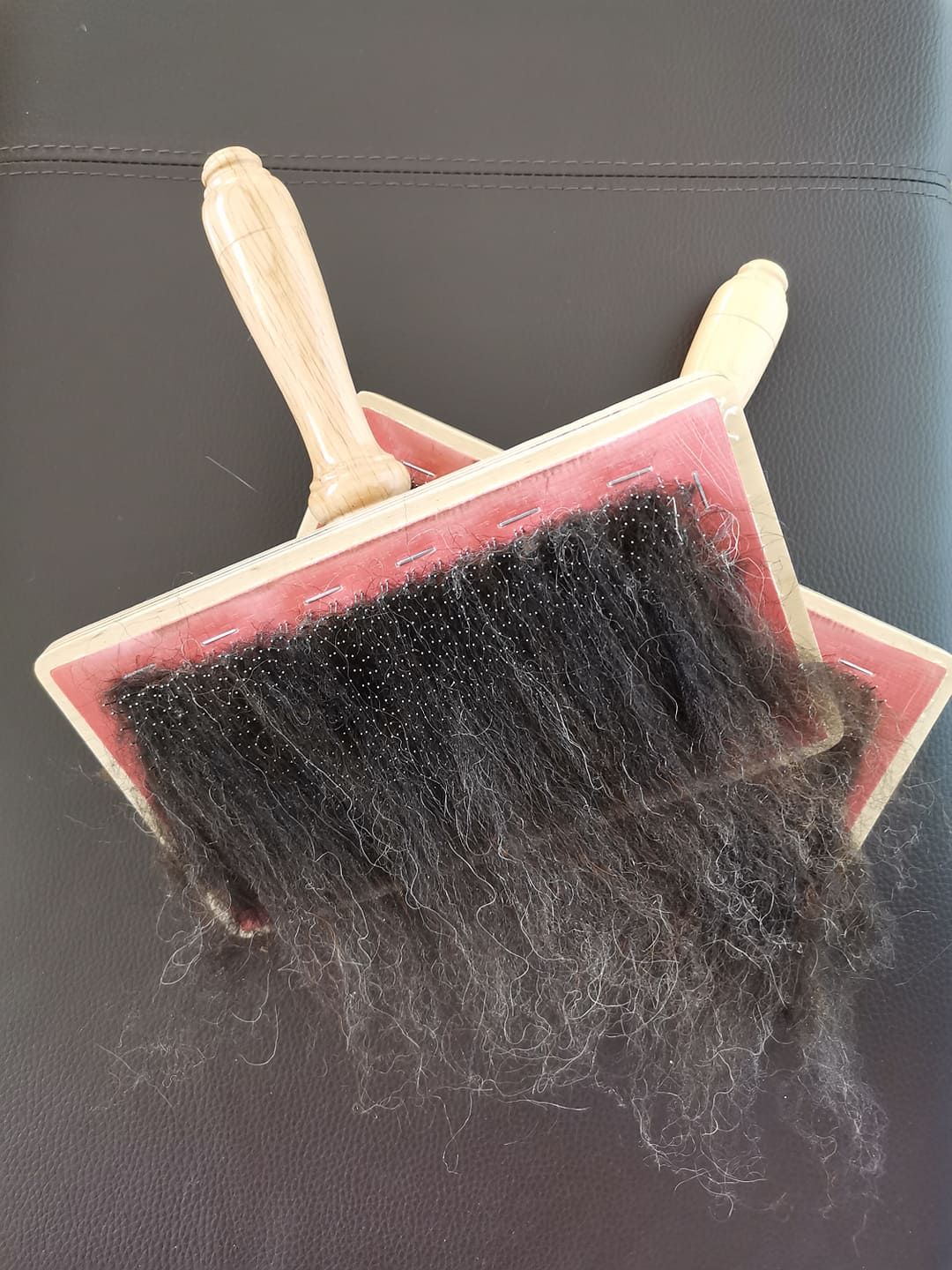 Unsere kleinere Variante. Dreck wird bei beiden Maschinen rausgebürstet und zu ordentlichen Vliesen kardiert.